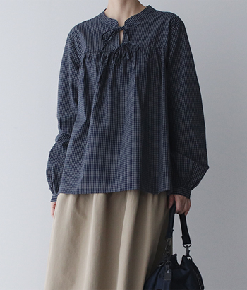 CHECK RIBBON BLOUSE(2C)
