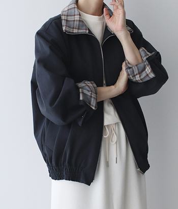 CHECK BOMBER JACKET(NAVY)